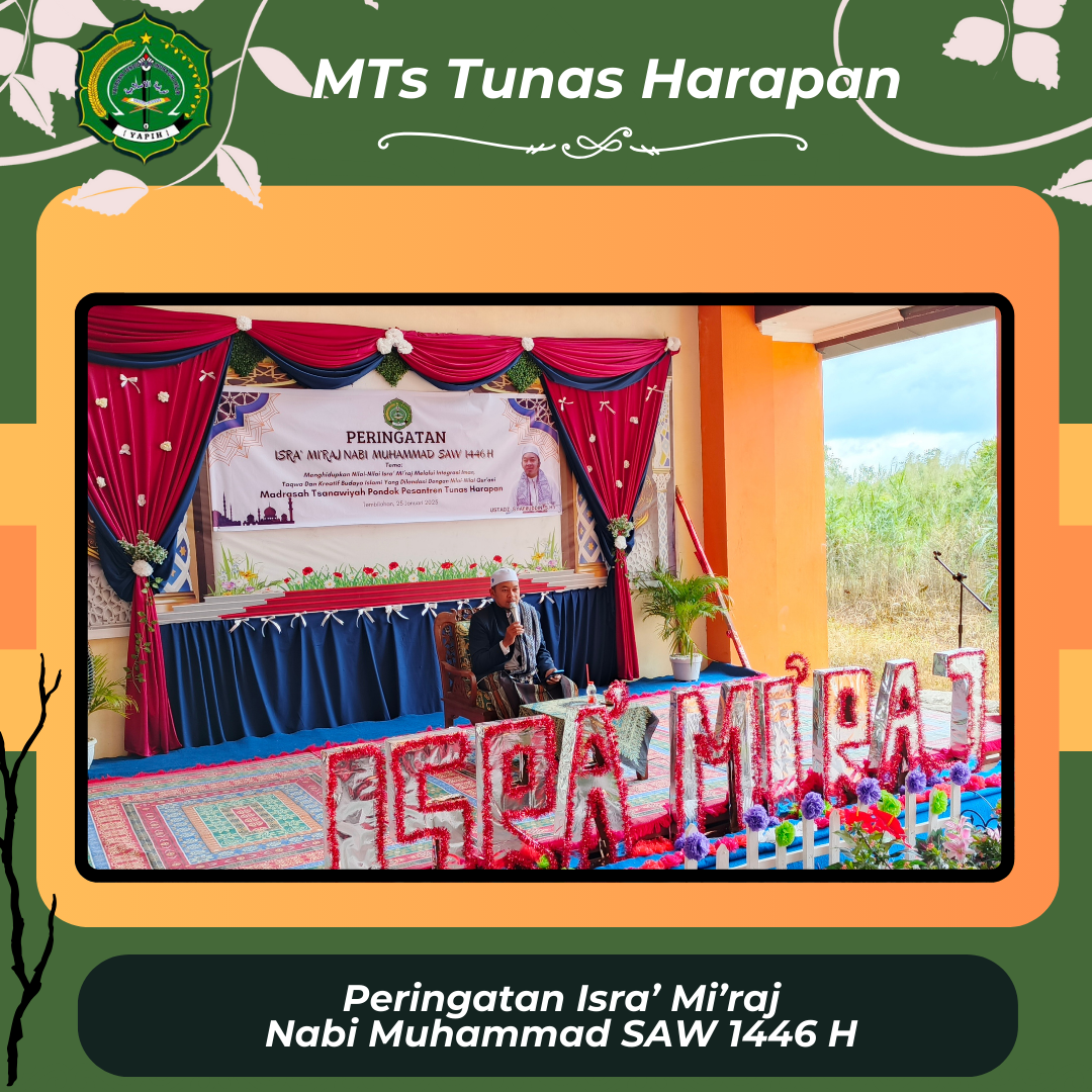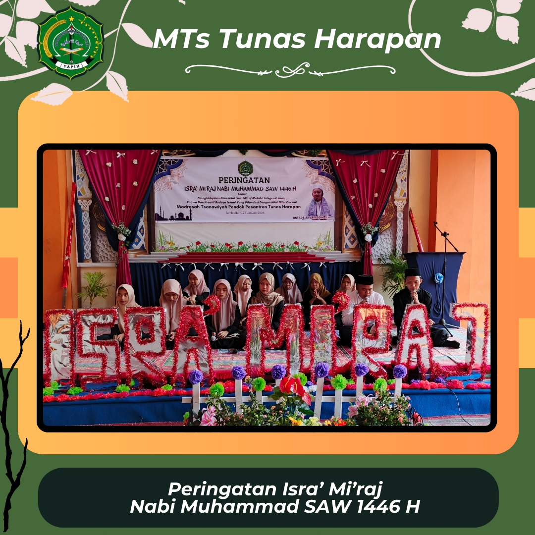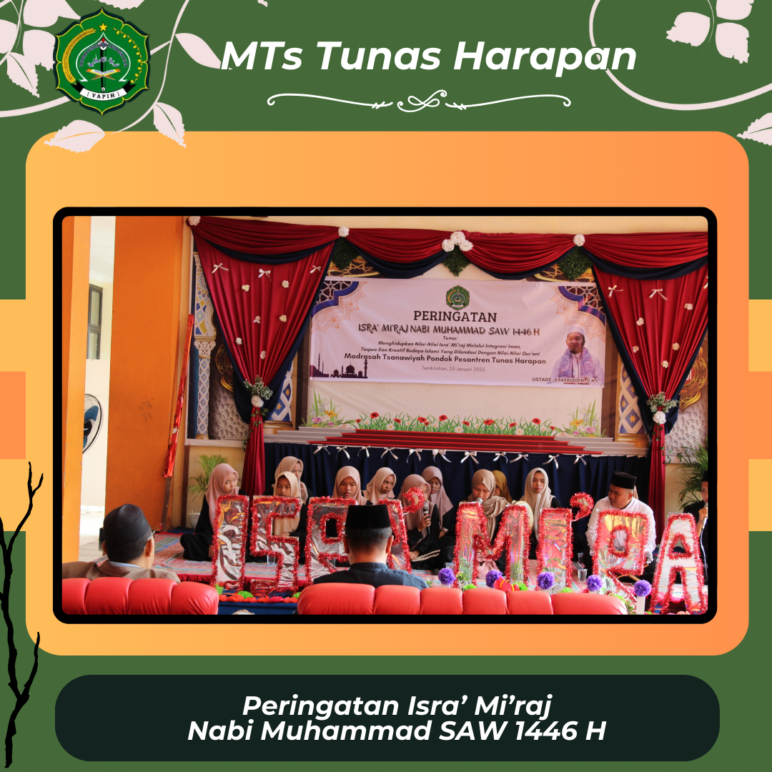 MTs Tunas Harapan Tembilahan akan menggelar peringatan Isra’ Mi’raj Nabi Muhammad SAW 1446 H pada Sabtu, 25 Januari 2025, mulai pukul 07.15 WIB. Acara ini bertujuan untuk memperingati salah satu peristiwa besar dalam sejarah Islam, yakni perjalanan spiritual Rasulullah SAW dari Masjidil Haram ke Masjidil Aqsa, yang diikuti dengan perjalanan menuju Sidratul Muntaha. Dengan tema “Menghidupkan Nilai-Nilai Isra' Mi'raj melalui Integritas Iman, Taqwa, dan Kreativitas Budaya Islam yang Dilandasi dengan Nilai-Nilai Qurani,” kegiatan ini diharapkan dapat menjadi momentum penting untuk menanamkan nilai-nilai keislaman kepada siswa, orang tua, dan masyarakat sekitar.