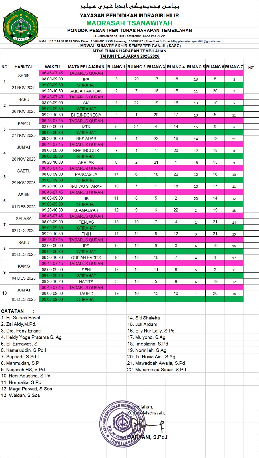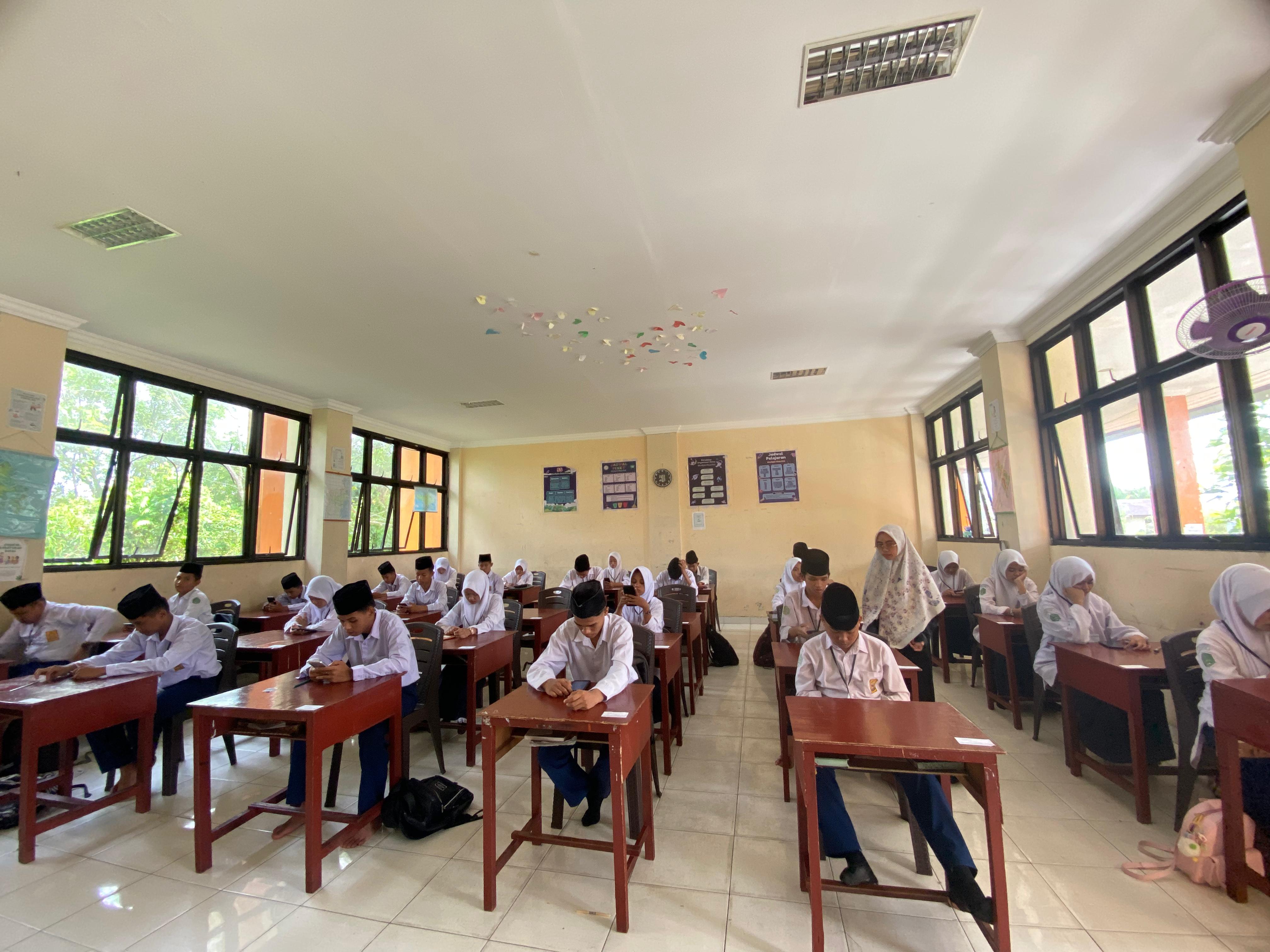 Pelaksanaan Ujian SAS (Sumatif Akhir Semester) Tahun Ajaran 2025/2026 ini dilaksanakan dengan sistem online (menggunakan Handphone genggam), setiap semesternya dilakukan dengan tujuan untuk menguji kemampuan siswa atas kegiatan pembelajaran yang dilakukan selama kurang lebih 5 bulan pembelajaran yang mereka ikuti secara formal dan mudah-mudahan dengan demikian anak didik kami dapat memahami, mengamalkan, dan melaksanakan apa yang sudah mereka dapatkan dibangku kelas.